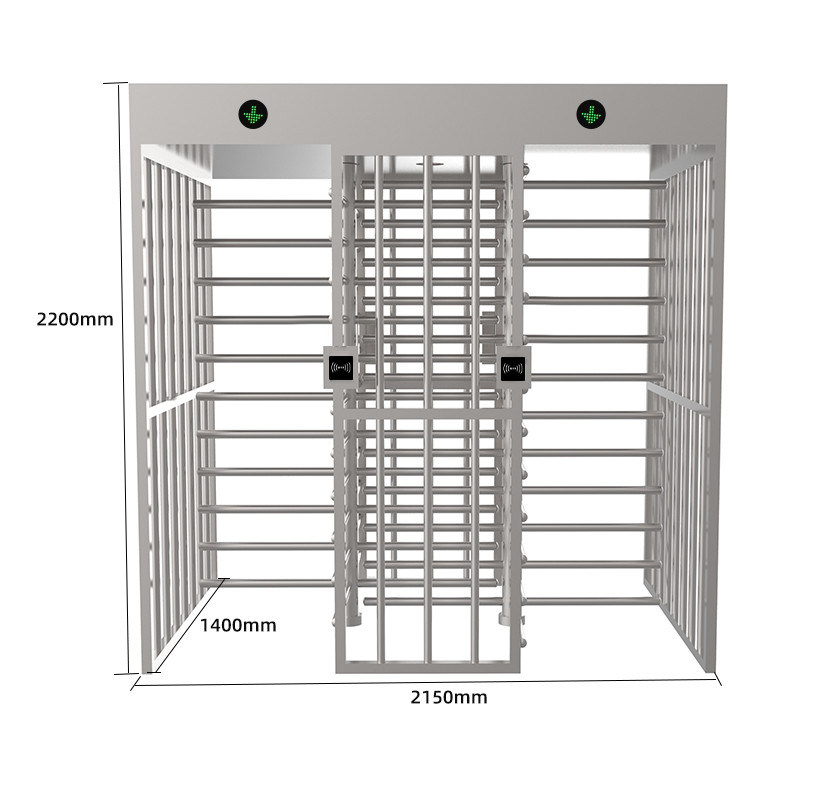 Il cancello girevole pieno di altezza AG-PX45141402 è sistemi di sicurezza che limitano l'accesso a certa area permettendo che soltanto una persona passi da parte a parte per volta. È chiamato «altezza completa» perché sono in genere abbastanza alti impedire alla gente di scavalcarle.