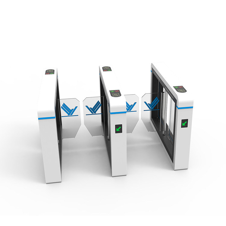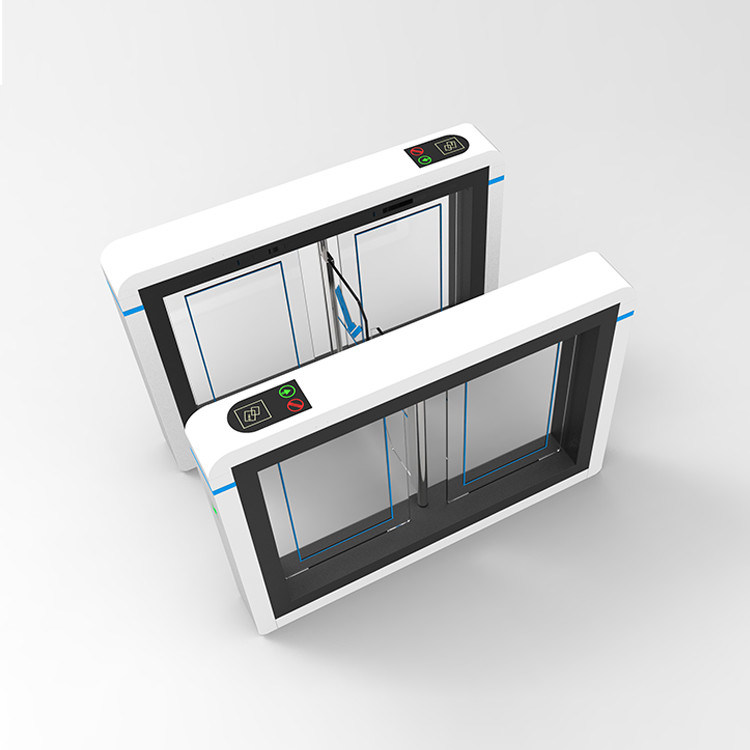 5, c'è un allarme udibile e visibile su questo cancello girevole del portone della barriera dell'oscillazione. Il LED del portone è blu quando è nella modalità standby, verde quando qualcuno attraversa e rosso quando qualcuno prova ad entrare nel passaggio del portone senza autorizzazione. Il cicalino nei segnali acustici del portone per avvertire gli individui della violazione di autorizzazione.